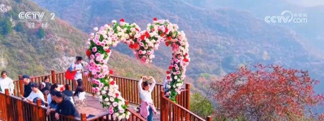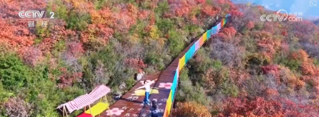 这里新落成的五彩步道全长1300米,沿山脊蜿蜒铺展,如一条绚烂彩带镶嵌于山间,每百米便有一处景致,步移景异。游客既能赏红叶烂漫、览太行雄姿,亦可于登高望远处邂逅一场秋日视觉盛宴。