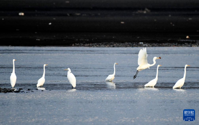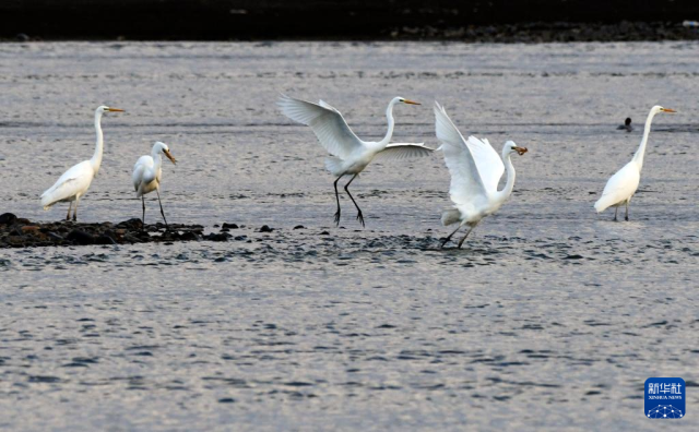 近日,一群南迁的白鹭飞临位于黑龙江省牡丹江市的牡丹江畔,休憩觅食,成为深秋里的一道美丽风景。