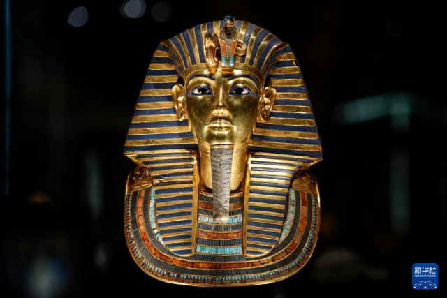 这是11月4日在埃及吉萨的大埃及博物馆法老图坦卡蒙展馆拍摄的法老的黄金面具。