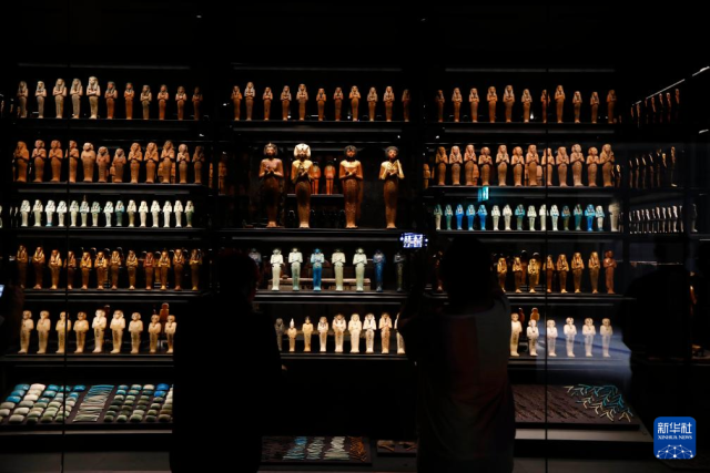 这是11月4日在埃及吉萨的大埃及博物馆法老图坦卡蒙展馆拍摄的展品。