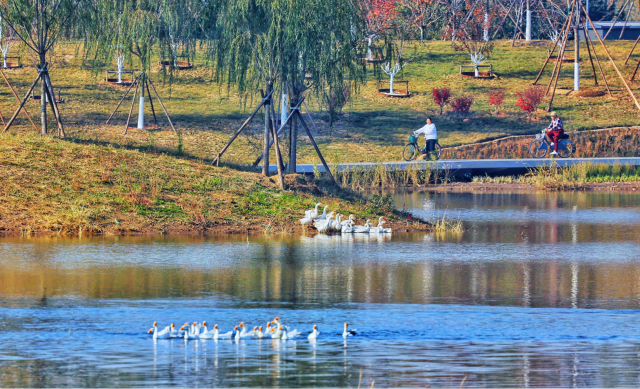 目前,第四使馆区段1.5公里林草水岸、酒仙桥路至郎园段2.3公里山碧桃水岸已开放。机场第二高速至温榆河段6.7公里滨水空间也于9月30日建成并对外开放,沿线配套建设了综合驿站、游船码头及运动场地。