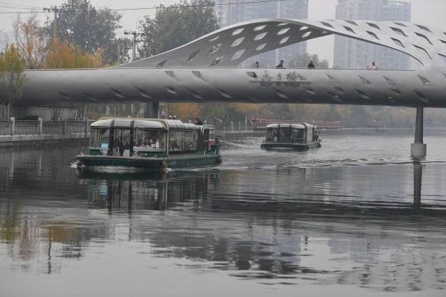 今天上午,坝河15公里游船航线开启试航。明年,游客有望乘船去往城市副中心,这也是北京首条贯通中心城区与城市副中心的旅游航线。