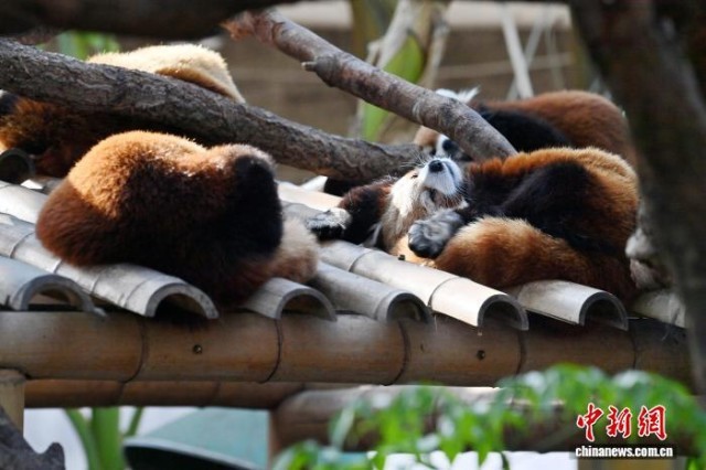 图为小熊猫在雨林阳光房打盹。中新社记者 张瑶 摄