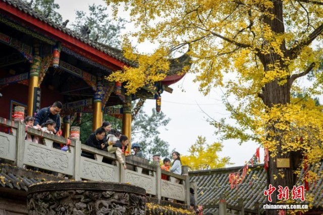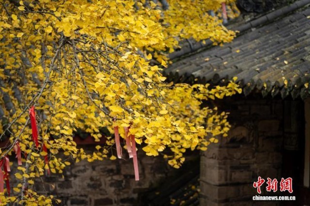 图为金黄的银杏叶与古建筑相映成趣。韩金雨 摄