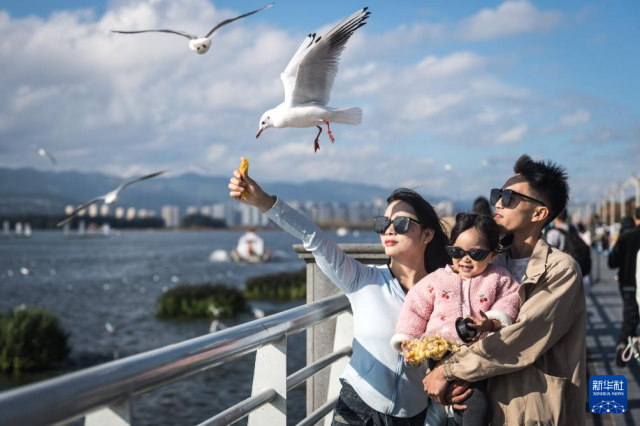 初冬昆明,红嘴鸥如约而至,跨越四十载人鸥和谐的画面在“春城”上演。