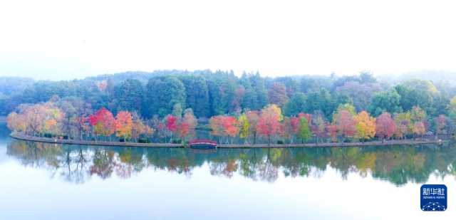 11月10日拍摄的南京中山植物园月牙堤景色(无人机照片)。