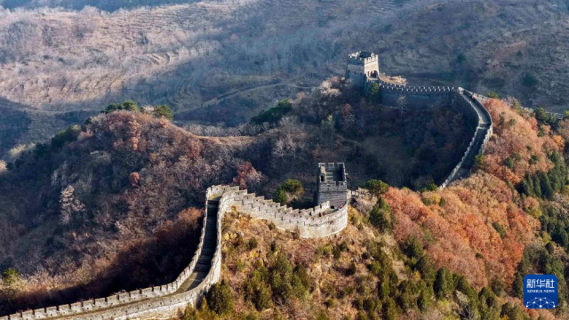 11月8日,在位于河北省承德市兴隆县与天津市蓟州区交界处拍摄的黄崖关长城景色(无人机照片)。