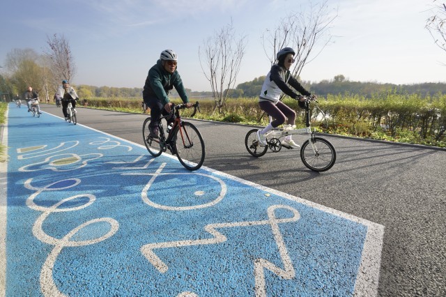 骑行活动通过沉浸式骑行体验,沿运河生态廊道展开秋日6公里骑游,沉浸式感受 “京秋慢时光”。沿途不仅有运河两岸层林尽染的秋日盛景,更能通过骑行道沿线的文化标识,了解大运河漕运人文历史。在践行绿色出行理念的同时,深度体验大运河文化魅力与副中心慢行系统建设成果。