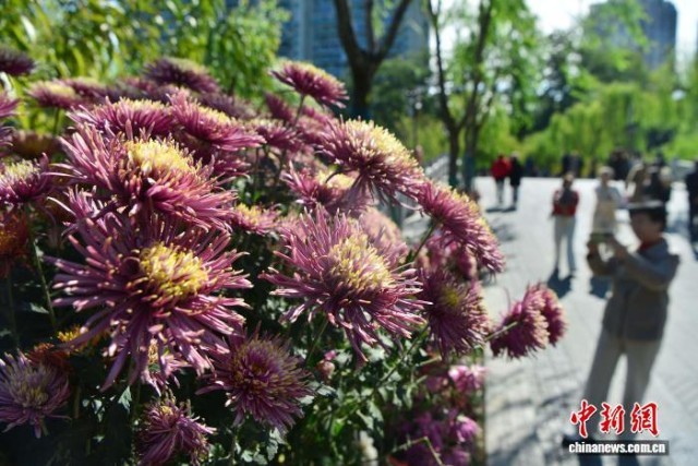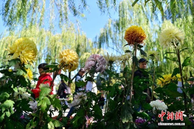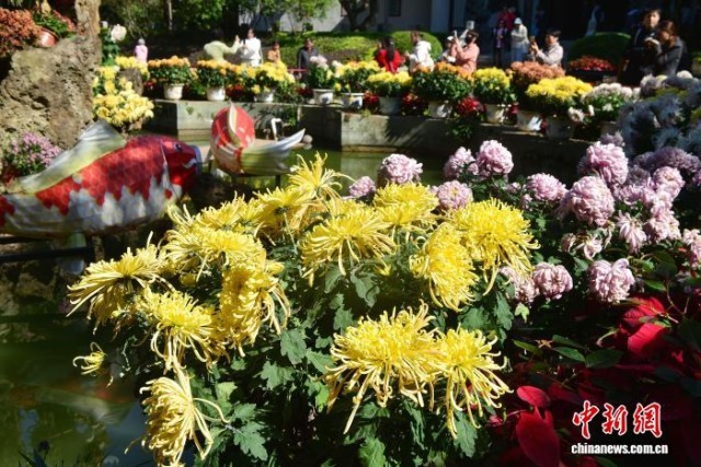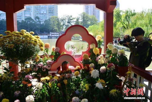 11月20日,正在福建福州西湖公园举行的菊花展,吸引许多市民和游人前来赏花。中新社记者 张斌 摄
