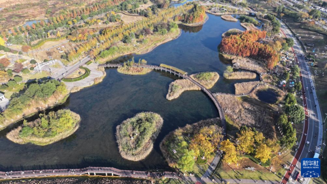 这是11月30日拍摄的松雅湖国家湿地公园景色(无人机照片)。