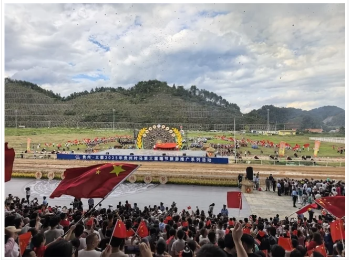 水族文化底蕴深厚,拥有水书习俗、端节等5项国家级非遗,61项非遗项目彰显独特魅力。作为“马背上的民族”,水族世代传承赛马习俗,三都将水族文化深度植入“贵州村马”赛事全流程,让一场体育竞技成为民族文化的活态博物馆。赛前马队踩街展示水族盛装,开端大典上寨老诵水书、祭先祖还原传统礼仪,赛事间隙穿插马尾绣技艺展演、水族双歌“旭早”演唱等非遗节目,让游客在热血竞技中沉浸式感受水族文化魅力。如今“贵州村马”不仅是49天端节的标志性活动,更入选2025中华体育文化优秀项目,也已经升级为全国知名文旅IP。