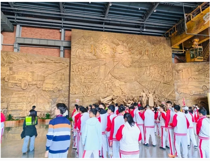 在东风故里旅游休闲街区,青石板路蜿蜒向前,墙缝里镶嵌的马灯、芦席棚构件、老石磨,都是从三线建设时期留存下来的“老物件”;2D美陈墙上,东风卡车从“芦席棚创业”到“现代化生产”的彩绘徐徐展开,与实景老巷叠印出“一步跨回七八十年代”的沉浸感。街区内的东风故里史料陈列馆,更是一部“立体工业史”:馆内珍藏着1200余件实物,从1969年东风初创时的手摇扳手、泛黄的生产图纸,到1980年代的流水线控制面板、职工食堂饭票,再通过场景模拟还原“芦席棚里造卡车”的艰苦场景,搭配一百多名老建设者的口述影像,让游客“听见”工业岁月的回响。