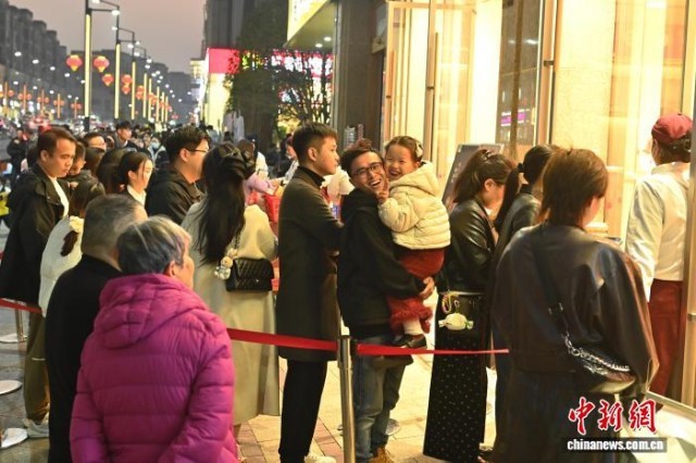 12月1日,游客在安徽省广德市一家奶茶店前排队。中新社记者 张强 摄