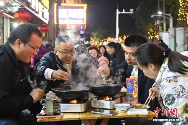 12月1日,游客在安徽省广德市迎春路的饭店品尝炖锅。中新社记者 张强 摄