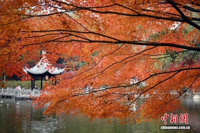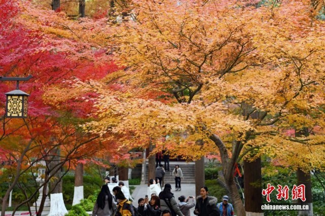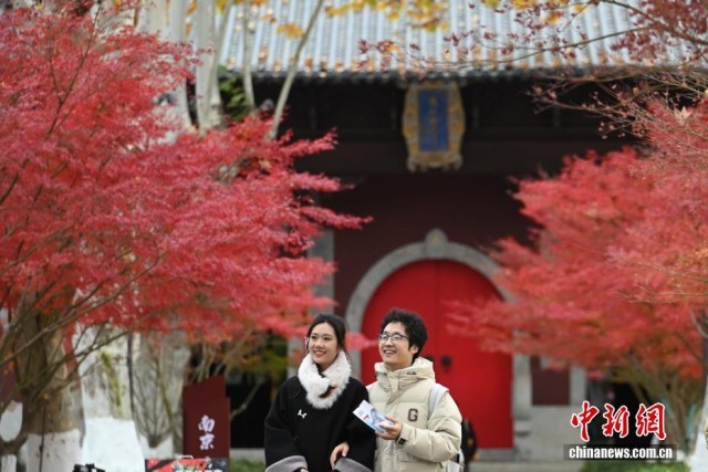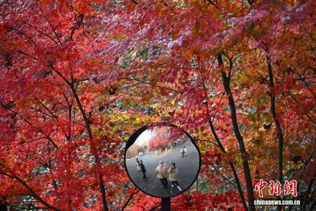 12月2日,江苏南京,栖霞山上枫叶美。近日,作为中国四大赏枫胜地之一的南京栖霞山迎来枫叶最佳观赏季,叶子层层叠叠,灿若云霞,游客穿行其间,仿佛置身画卷之中。