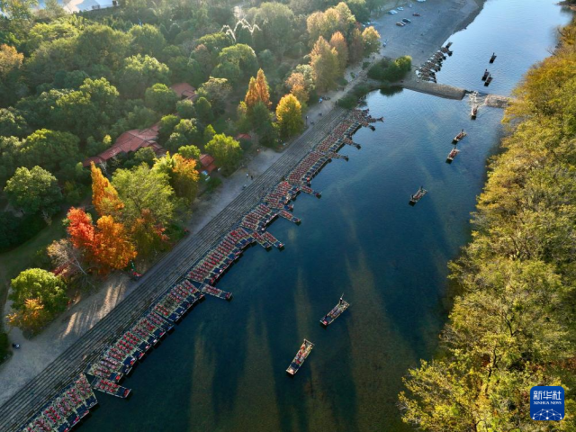 这是11月30日拍摄的福建武夷山九曲溪竹筏码头附近景色(无人机照片)。