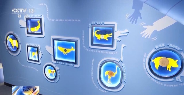 展厅里的皮肤触摸墙提供鲸、鳄鱼、猪等多种动物皮肤纹理对比,对于绝大多数观众来说,见过鲸并不稀奇,但能亲手触摸鲸类的人恐怕寥寥无几,在大多数人眼中或想象中光滑的鲸类皮肤,却有着深海“液态皮草”的独特质感。