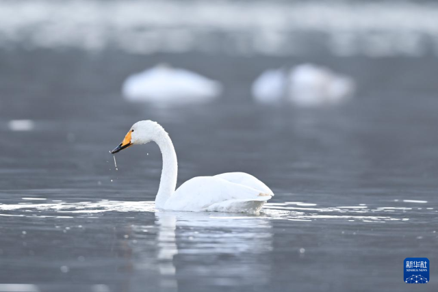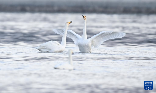 这是12月3日在化隆回族自治县境内的黄河边拍摄的天鹅。