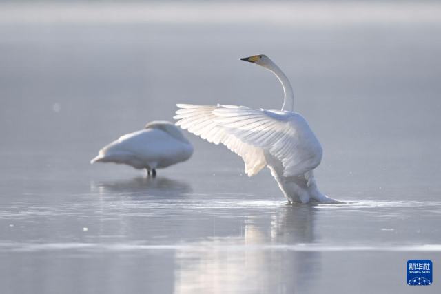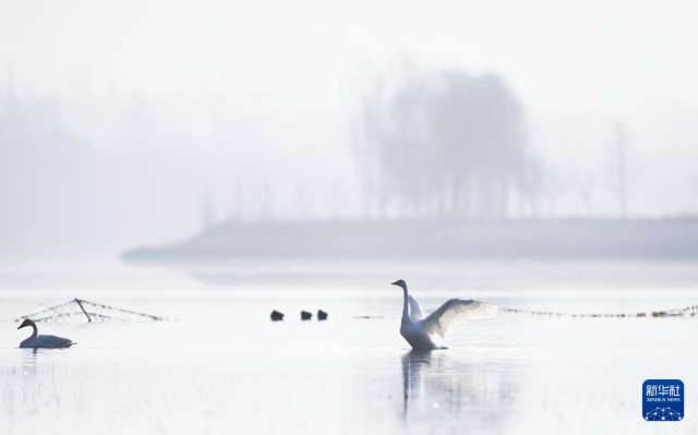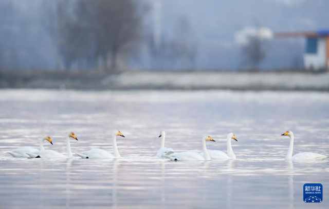 这是12月2日在化隆回族自治县境内的黄河边拍摄的天鹅。