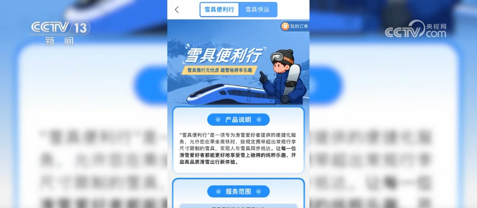北京北站车间副主任 高旭:携带雪具出行的旅客可通过铁路12306客户端“雪具便利行”功能查询服务信息,购买指定列车车票后,在购票成功页面选择“雪具便利行”服务并预约付费,开车前10分钟停止受理,开车前1小时可取消订单并全额退款。