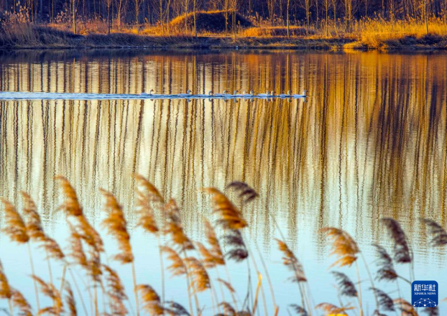 ??12月8日,群鸟在江苏兴化里下河国家湿地公园内栖息、觅食(无人机照片)。