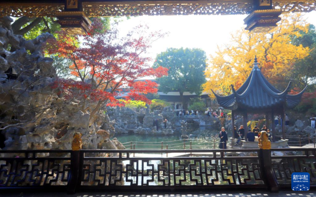 ??12月8日,游客在江苏苏州狮子林观光游览。