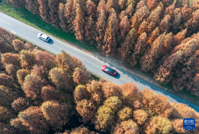 ??12月8日在浙江省湖州市长兴县夹浦镇拍摄的乡村公路(无人机照片)。