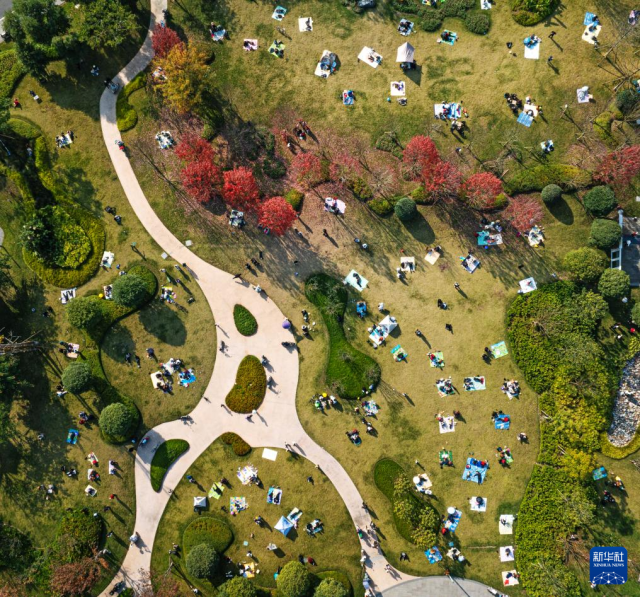 ??12月7日,游客在四川省乐山市市中区一公园休闲游玩(无人机照片)。