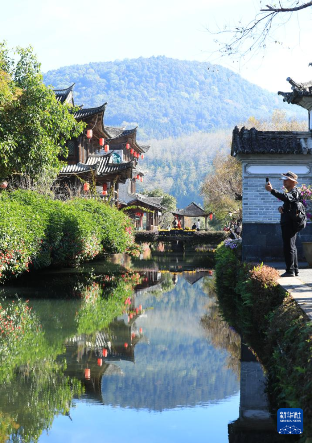 ??12月8日,游人在云南省腾冲市和顺镇拍照游玩。