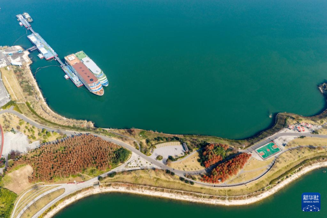 ??12月8日拍摄的湖北省宜昌市秭归县木鱼岛天问公园冬景(无人机照片)。