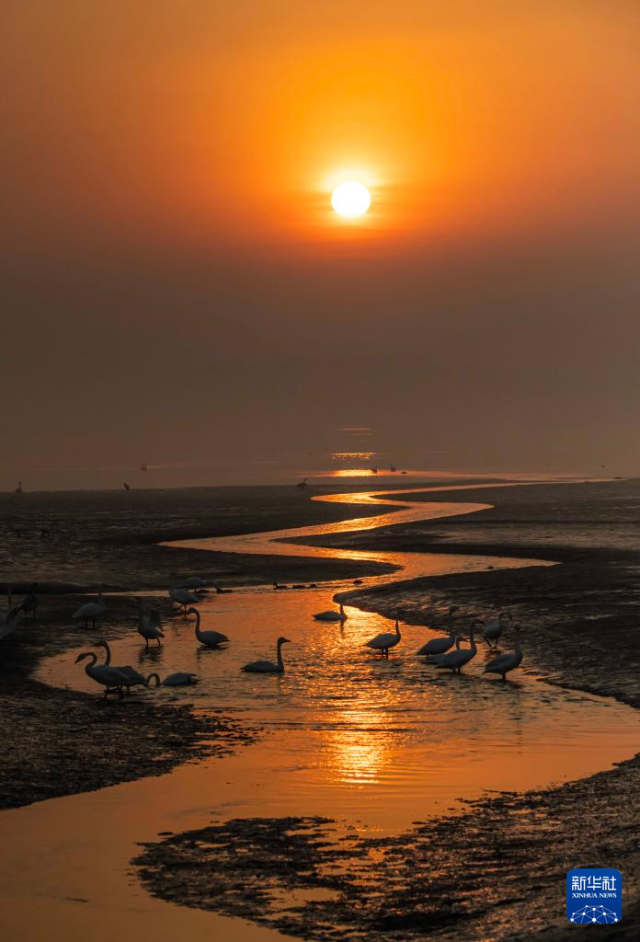 ??12月7日在山东省荣成市成山镇鸿鹄湾摄影区拍摄的大天鹅。