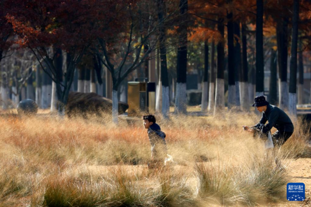 ??12月7日,市民在江苏省海安市上湖风景区游玩。