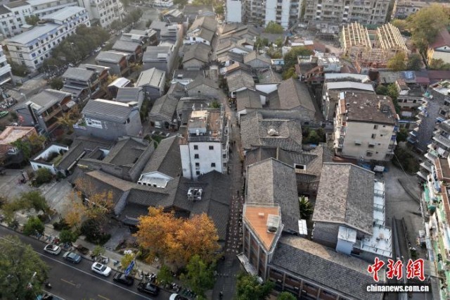 12月8日,航拍刘祠堂背历史文化街区。刘祠堂背历史文化街区是浙江丽水城区留下来的唯一明清古街。近年来,街区近年来遵循 “修旧如旧” 原则实施改造,在完整保留其历史风貌与遗存的同时,系统引入了丰富的现代业态。如今,这里已成为集文化、休闲、消费于一体的文旅新地标,在传承城市记忆的同时焕发出新的生机与活力。(无人机照片)中新社发 孙杨洋 摄