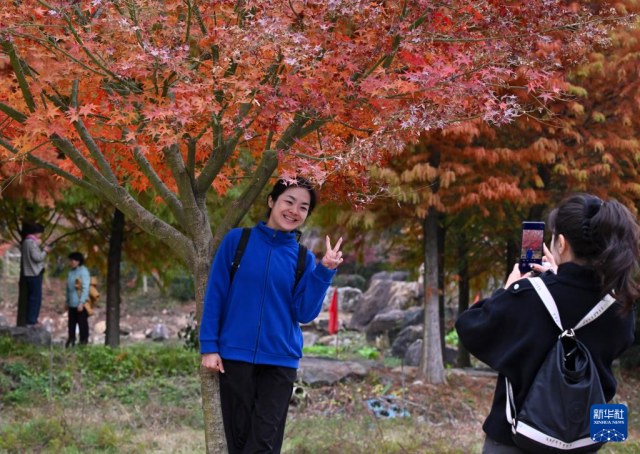 冬日时节,福建省福州市晋安区寿山乡九峰村层林尽染,火红的枫叶和水杉与古朴村落、清澈溪流、石拱桥影相映成趣,共同勾勒出一幅冬日胜景,吸引众多游人前来。