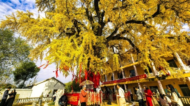 初冬的皖中平原,草木渐染霜华。在安徽省巢湖市苏湾镇司集村,天台禅寺旁的那棵千年银杏树,正迎来一年中最美的时节。金黄的叶片如万千蝶翼,在阳光下熠熠生辉,随风轻舞间,洒落一地碎金。这抹跨越千年的亮色,不仅吸引着周边市县的游客纷至沓来,更在保护古树的理念指引下,催生出乡村旅游的新活力,为当地零售市场注入了久违的暖意与希望。