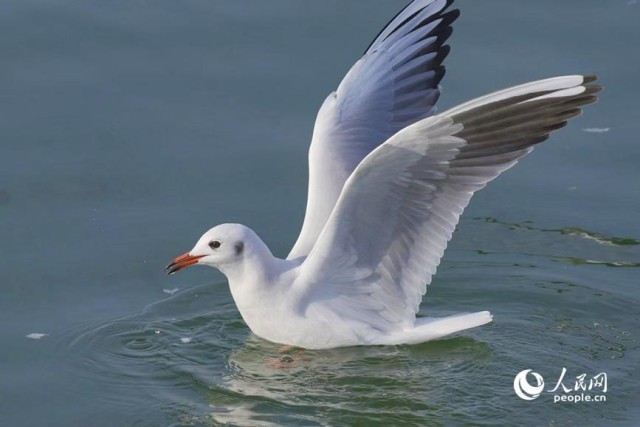 红嘴鸥在水面轻舞。人民网 程明辉摄