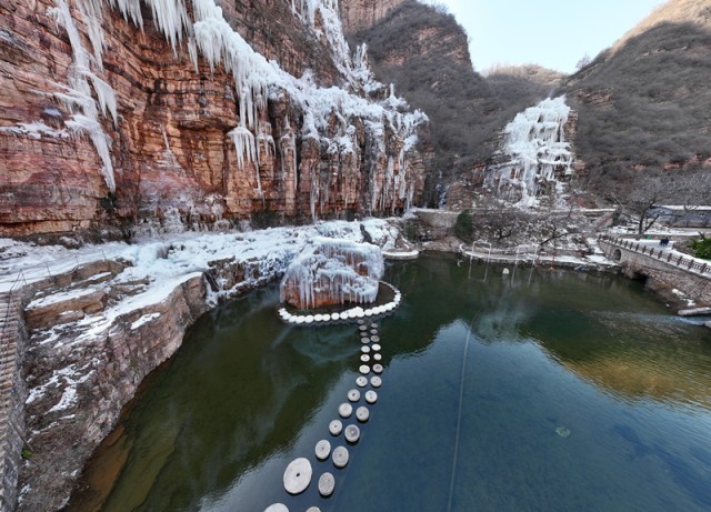 12月21日,在邢台市天河山风景区拍摄的冰瀑景观。