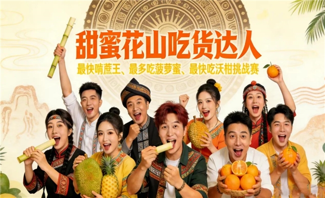 1.“甜蜜花山吃货达人”话题挑战火热上线!10位区内外吃播达人集结,现场比拼“最快啃蔗王”“最多吃菠萝蜜”“最快吃沃柑”,一口咬下宁明的鲜甜,这场舌尖上的速度与激情,等你来围观打call!