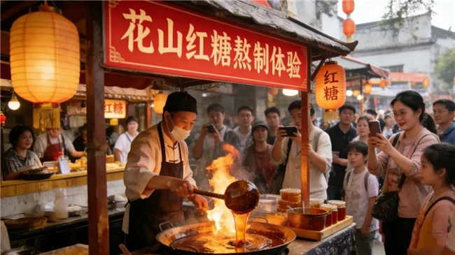 花山古法红糖的甜蜜密码,由非遗传承人现场解锁!从甘蔗榨汁到慢火熬煮,亲眼见证琥珀色的红糖块诞生,听传承人讲述花山红糖的百年历史与独特技艺。更有刚出锅的红糖块、糖浆免费品尝,一口甜到心坎里。