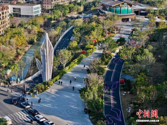 12月30日,空中俯瞰福建福州三江口植物园。(无人机照片)中新社记者 王东明 摄