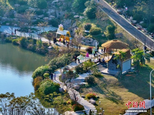 12月30日,市民在福建福州三江口植物园游玩。(无人机照片)中新社记者 王东明 摄
