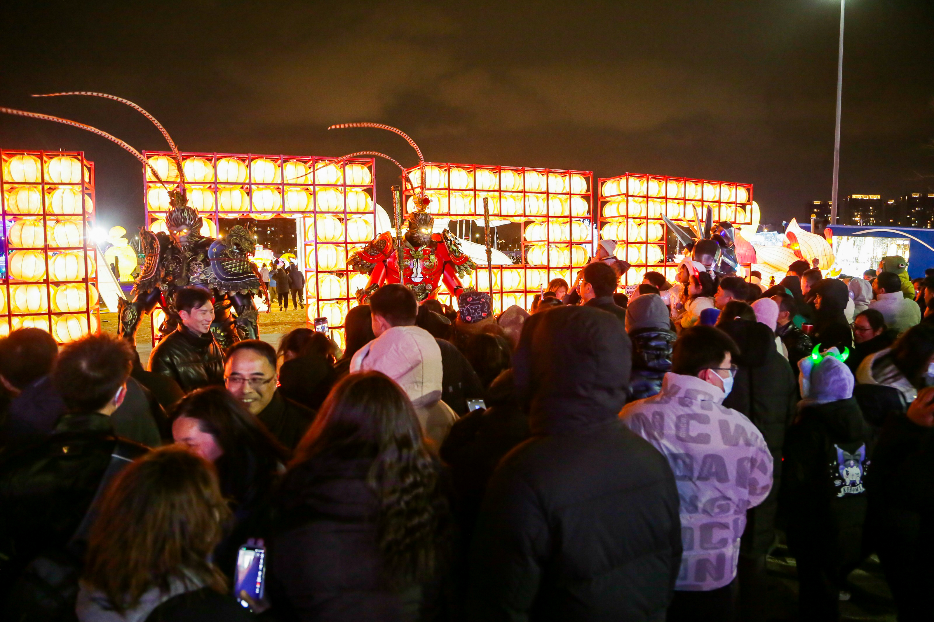本次跨年夜正值2026年太仓阿尔卑斯国际度假区冰雪燃灯节期间,“吉灯贺岁”、“冰雪奇境”、“好运接区”、“花灯雅集”、“童梦乐园”五大主题灯光艺术空间,共40组以上非遗自贡花灯组绘制成一幅大型国潮文化与冰雪相结合的璀璨奇幻画卷。游客穿梭在缤纷灯海奇境之中,仿佛每一盏花灯都在诉说着动人的故事,传统与现代交织更是将这个冬日的新年仪式感拉满。