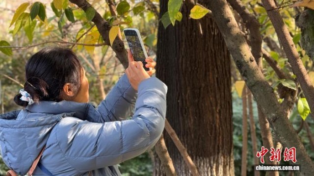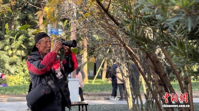 图为游人正在成都市人民公园内蜡梅盛放的一隅打卡。杨予頔 摄