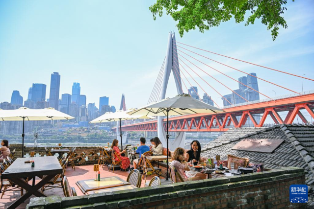 2025年5月1日,游客在重庆市南岸区龙门浩老街一餐厅用餐。