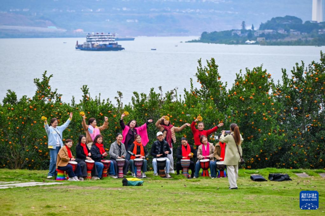 2025年11月14日,游客在重庆万州小桔灯生态文化旅游区拍照留影。