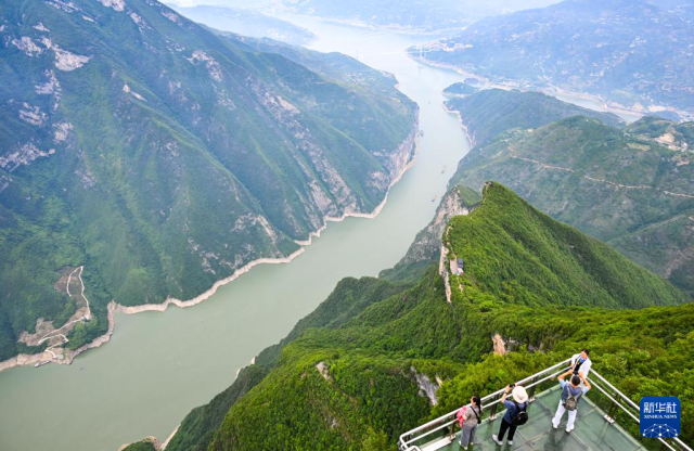 2025年6月9日,游客在重庆奉节三峡之巅风景区观赏瞿塘峡景色。