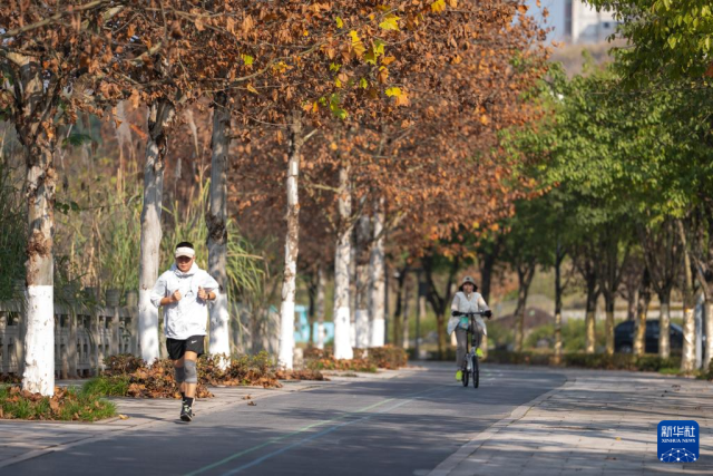 1月6日,市民在重庆市两江新区金海湾滨江公园锻炼。