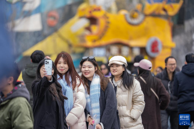 1月5日,游客在重庆九龙坡区艺术公园拍照打卡。