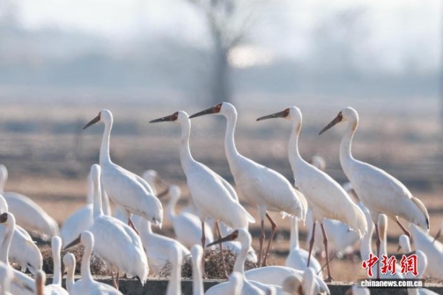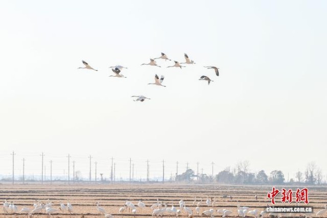 图为众多候鸟翔集于鄱阳湖畔的田野中。中新社记者 刘力鑫 摄