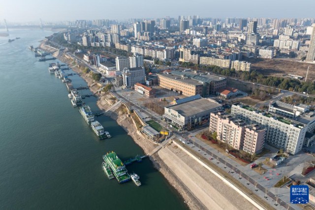 这是1月7日拍摄的位于长江边的湖北省荆州市沙市洋码头文创园(无人机照片)。